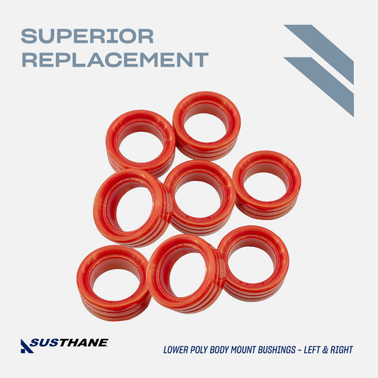 PRODUCT DETAILS: Front & Rear Body Mount Bushing Kit, Polyurethane Upgrade!