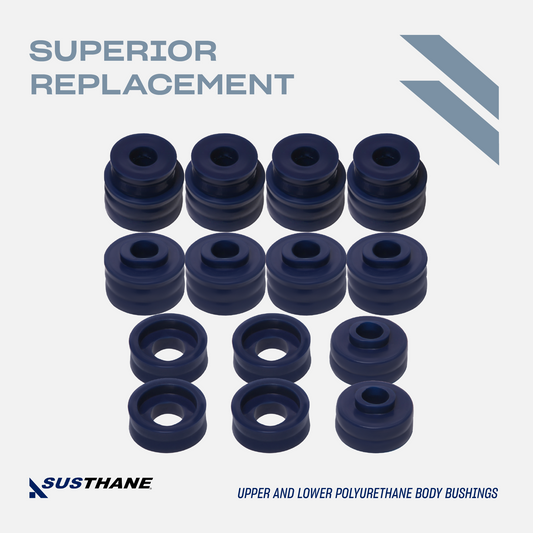 PRODUCT DETAILS: Front & Rear Body Mount Bushing Kit, Polyurethane Upgrade!
