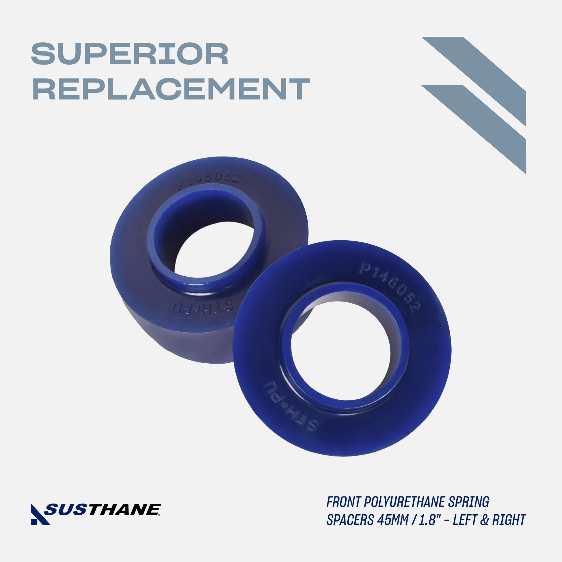 Upgrade your Wrangler JK with this SUSTHANE 6-Piece Front & Rear Polyurethane Spacer Kit 45mm / 1.8". Due to suspension geometry, this will give you lift height of 2", which improves suspension performance through proper spacing and alignment.