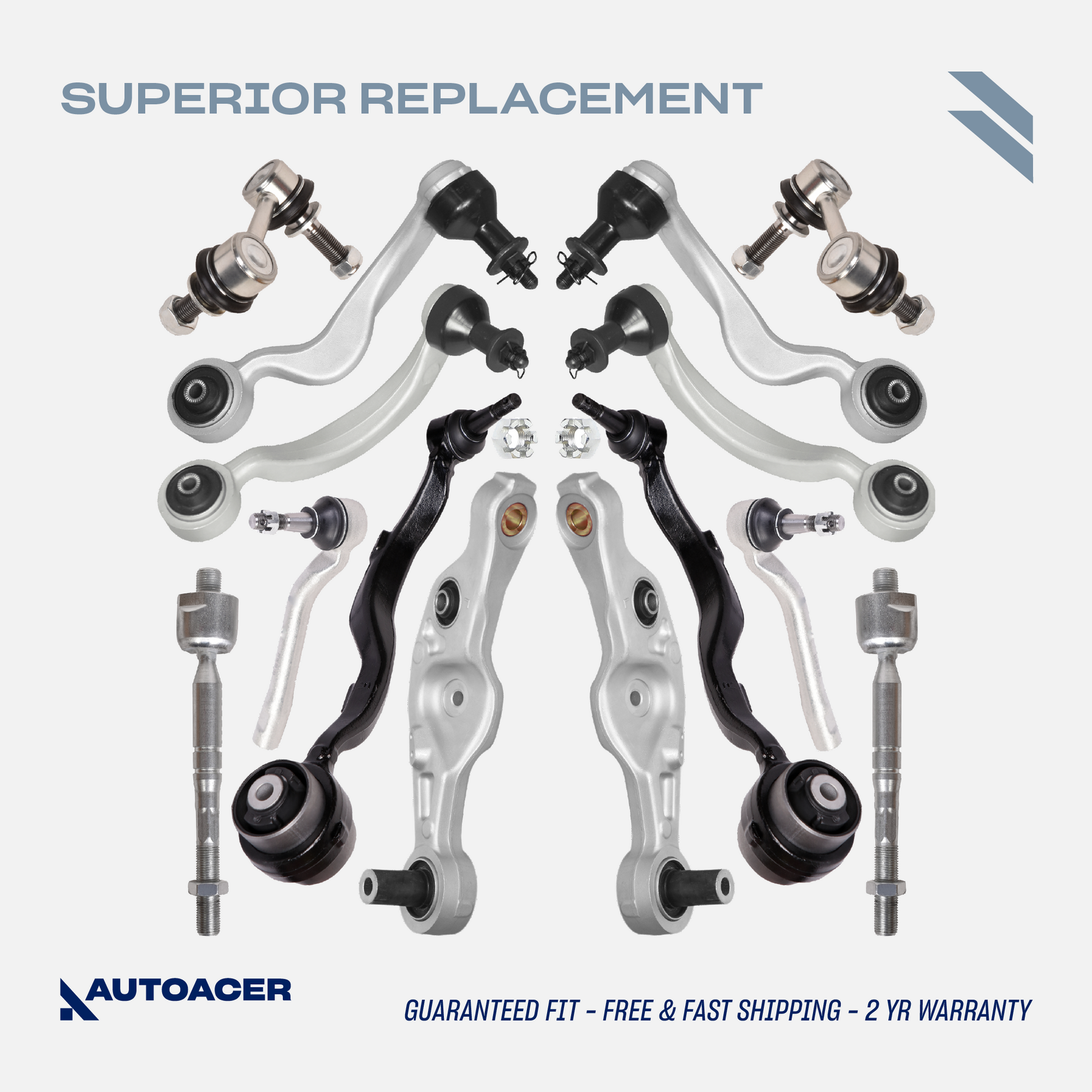 Upgrade your LS460 / LS600h with this AUTOACER 14-Piece Front Control Arms & Stabilizer Links & Tie Rod Kit, this set restores factory ride quality and handling.